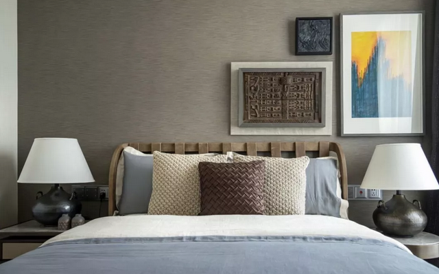 近年來北歐、日式風格逐漸盛行,原木也開始成為設計上的主打材質, 用木飾面代替相框、裝飾畫來進行臥室裝扮,新意十足。