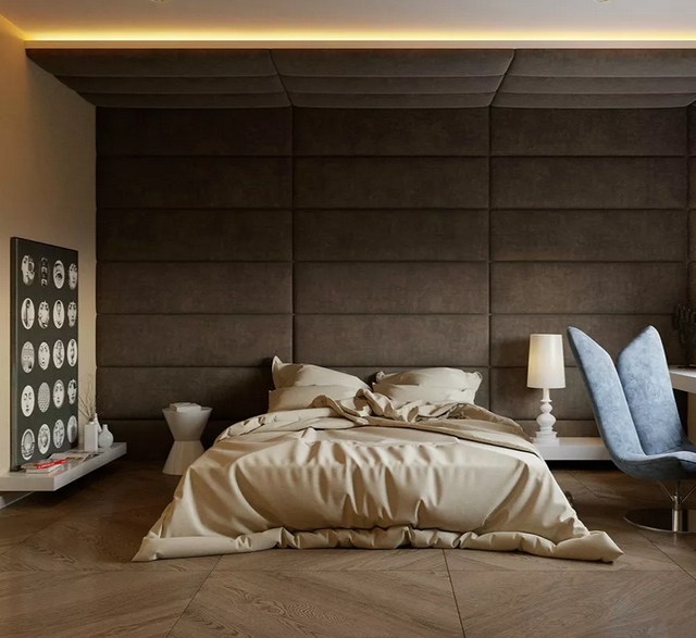 軟包背景墻質地柔軟,如果選用柔和的色調更能起到柔化空間的效果。同時,軟包背景墻除了美觀的效果外,還具有阻燃、吸音、隔音、防潮、防靜電、防撞的功能。