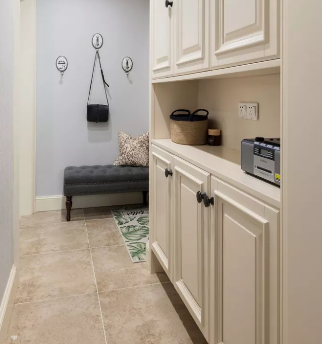 其實鞋柜的款式多種多樣,你可以按照自己喜歡的樣子來定制,但不管是什么樣的鞋柜最好都要具備這兩種特質:底部懸空+換鞋凳。