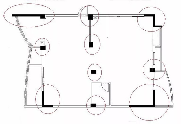 如果你有自己房屋的戶型圖,可以打開看看,如圖所示,在工程圖上標(biāo)注為黑色的墻體就是承重墻,而標(biāo)注為白色部分的墻體為非承重墻,這類墻體可以進(jìn)行適量拆改。