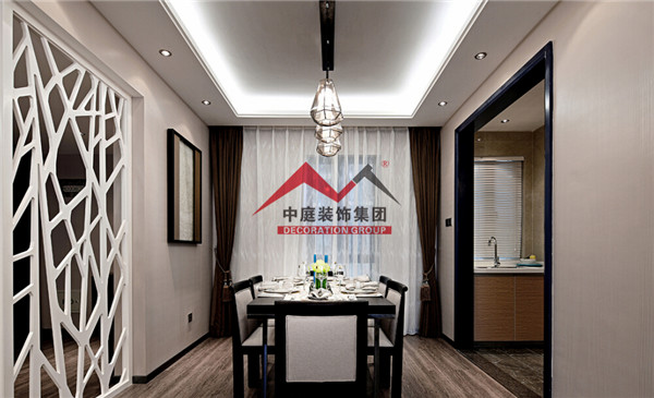 餐廳做了個簡單的吊頂,利用筒燈跟燈帶做照明,垂釣式的燈泡燈,簡單又有格調(diào),讓空間變的有設計感。