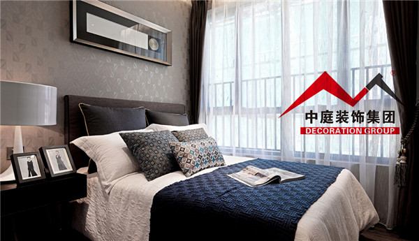 側(cè)臥床頭采用墻紙塑造墻面,經(jīng)濟又實惠。
