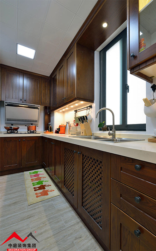 廚房繼續(xù)延續(xù)整個(gè)空間的輕美式風(fēng)格,木制門(mén)板造型精致美觀典雅,讓人賞心悅目!在這樣美的空間為一家人準(zhǔn)備餐點(diǎn),難道不是一種享受嗎?