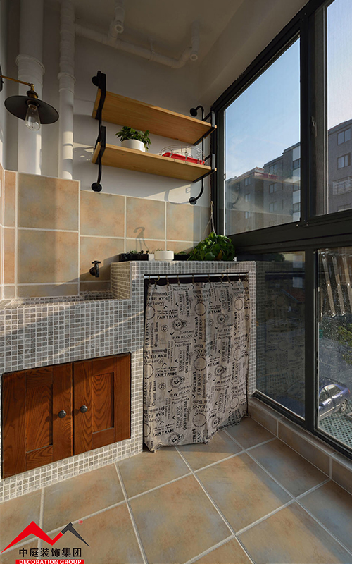 陽(yáng)光照射地磚顯得陽(yáng)臺(tái)更加溫暖,棕色的柜門(mén)凸顯,洗漱旁擺放著綠栽,給人起到了放松舒適的感覺(jué)。