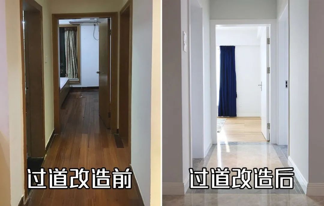木地板換成地磚,耐磨防潮,而且客廳顯得更加亮堂,過道的瓷磚加邊線,以達(dá)到空間上的區(qū)別,并且增添了美感,也避免單調(diào)。