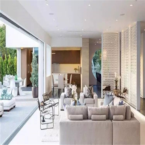 1、長條形的客廳在與餐廳等隔斷時,應避免采用硬隔斷,因為本來空間就小,硬隔斷會使客廳看起來像個箱子一樣,給人壓抑感,而且也有可能影響采光。開放式的客廳餐廳可能效果會更好一些,不管是休閑還是吃飯,都不會覺得擁擠。對于不喜歡開放式的朋友來說,可以使用軟隔斷,比如用一個簾子或者鏤空的屏風等,效果都會非常不錯。但是隔斷物的顏色不易太過厚重,以簡潔輕快為好。