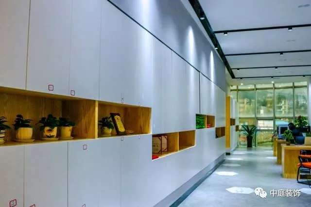 一進(jìn)去就看到一排整潔的白色儲物柜,一盆盆綠植生機勃勃。