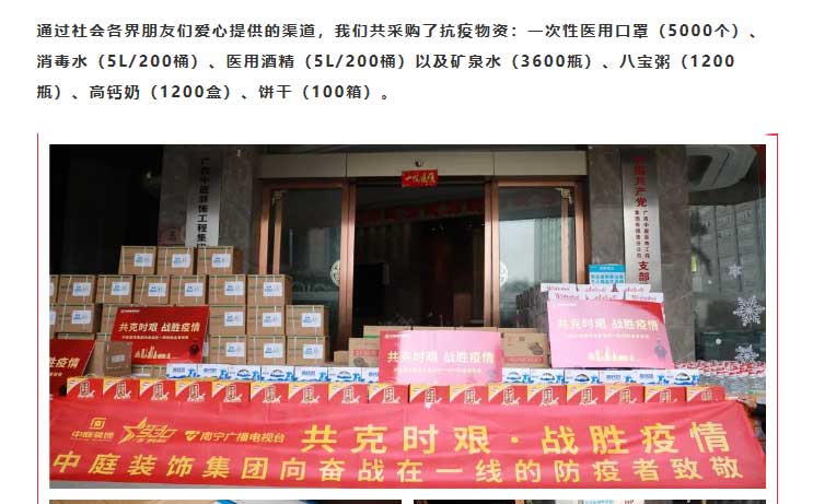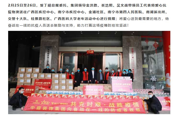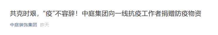 共克時艱,“疫”不容辭!中庭集團(tuán)向一線抗疫工作者捐贈防疫物資