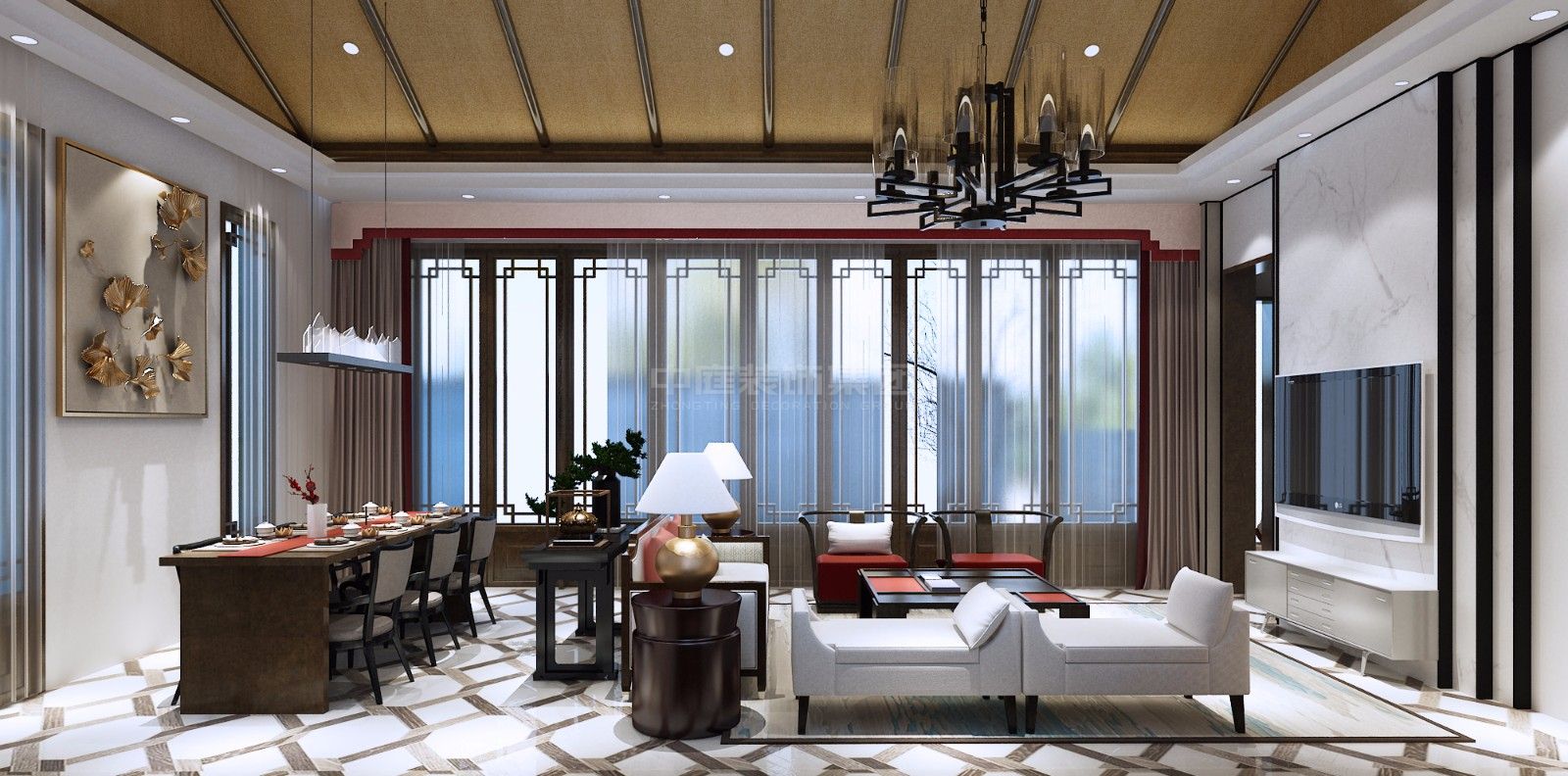 施工面積:80-120㎡| 設(shè)計(jì)風(fēng)格:新中式風(fēng)格