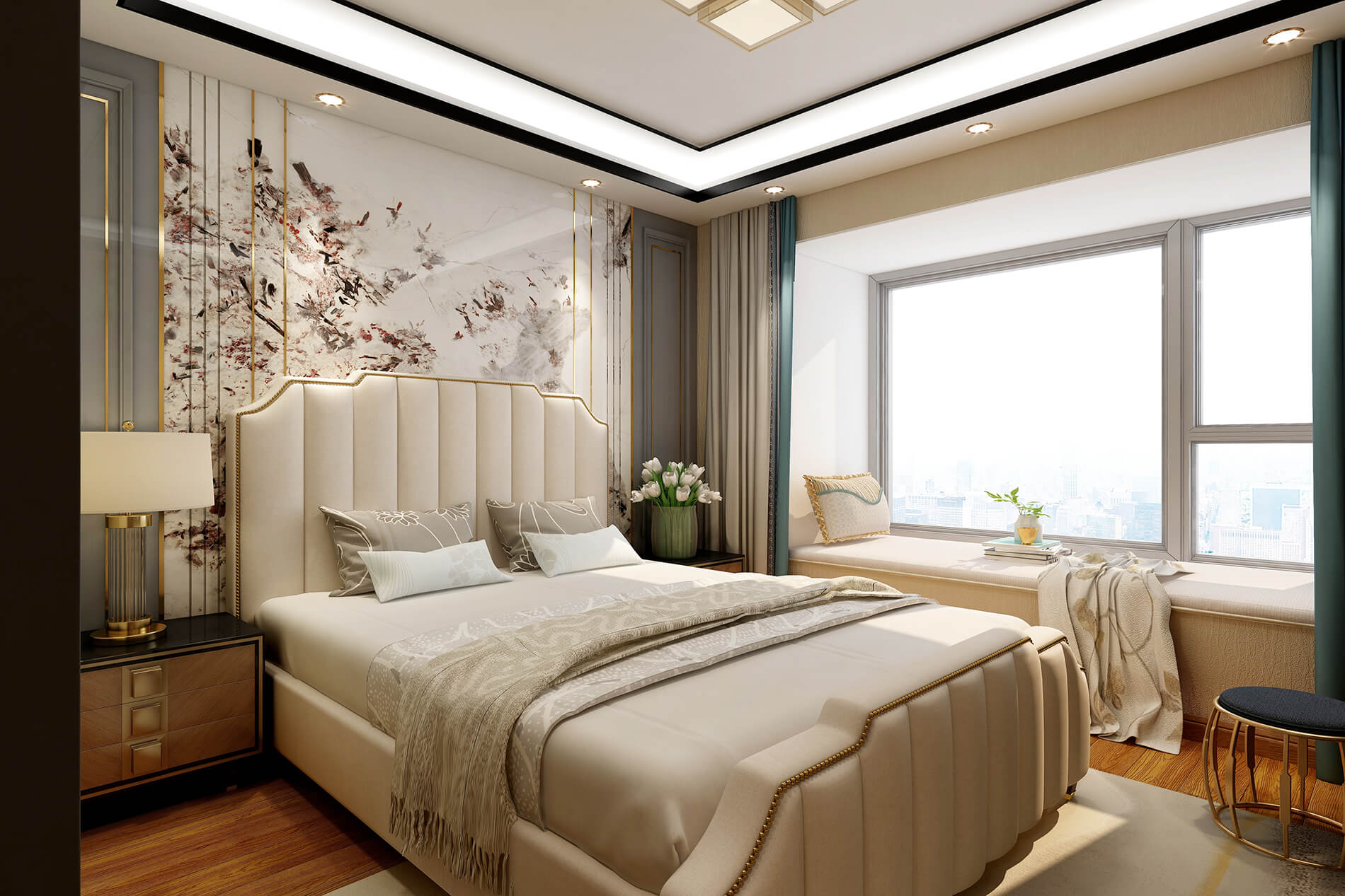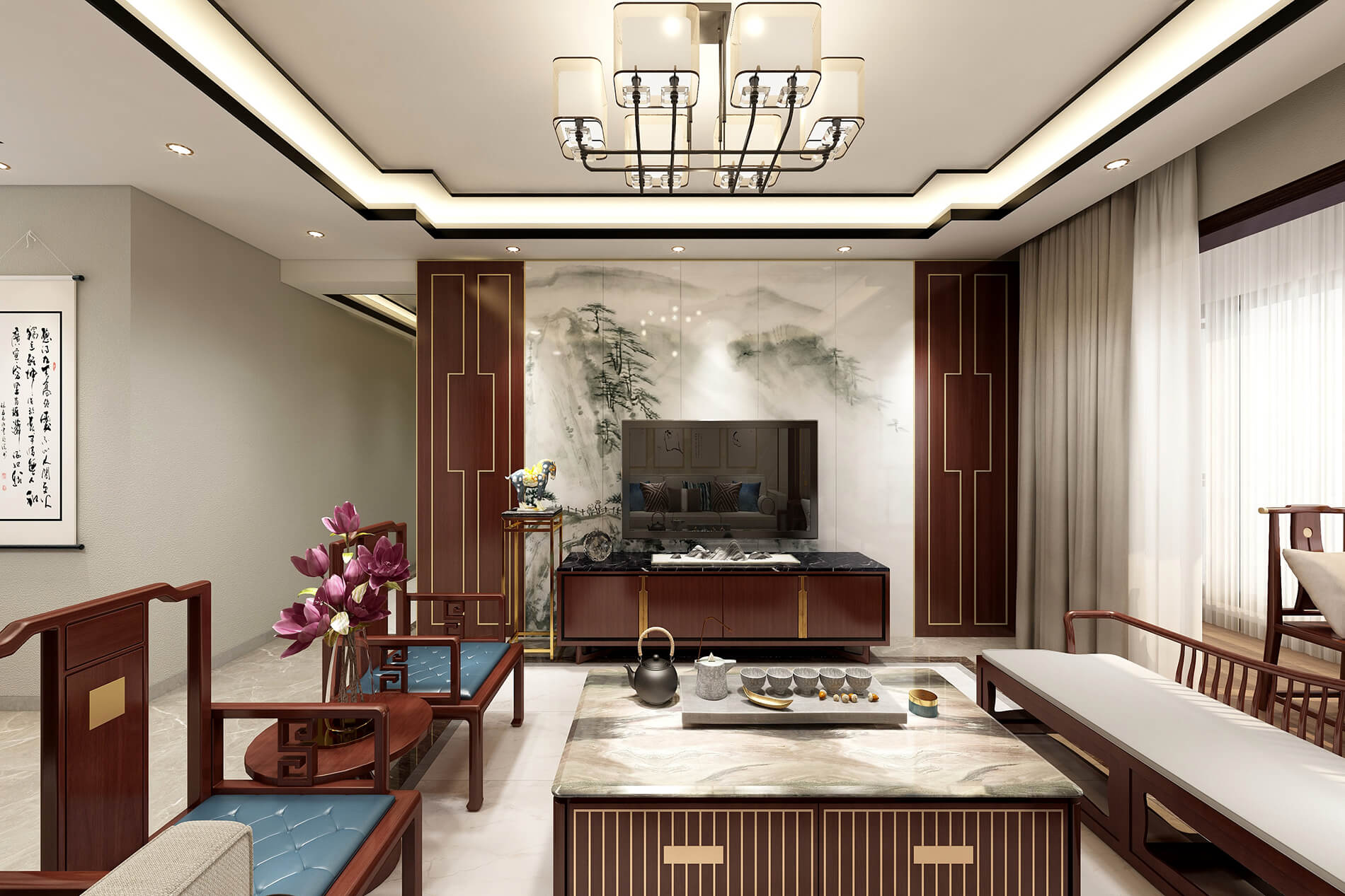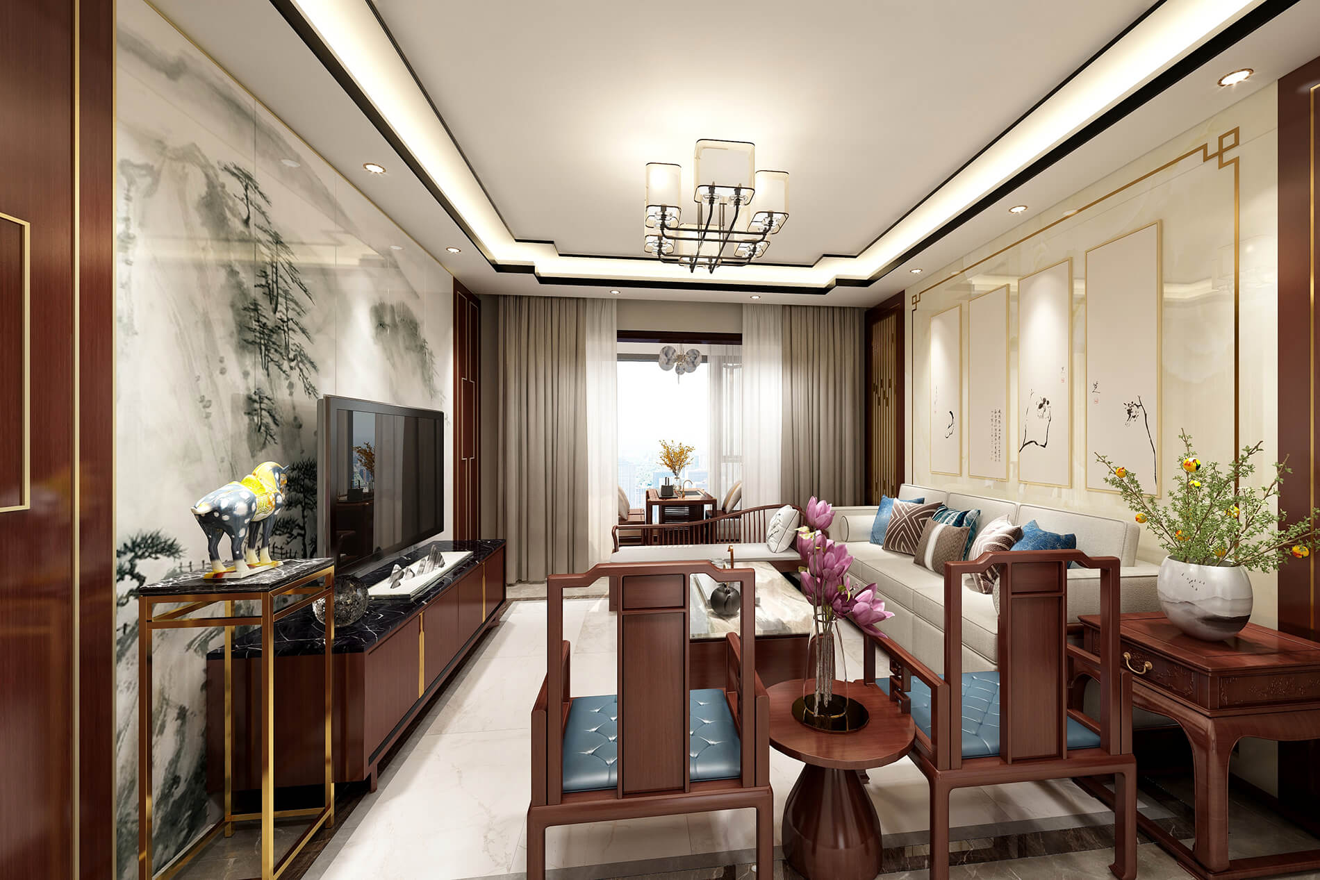綠地中央廣場141m²新中式風(fēng)格案例