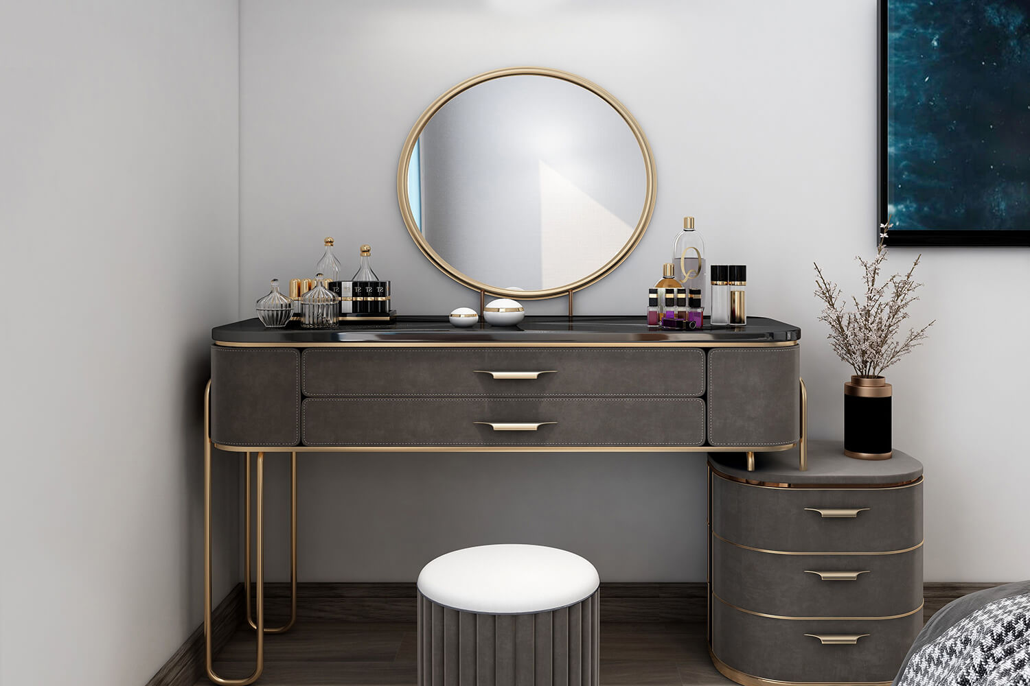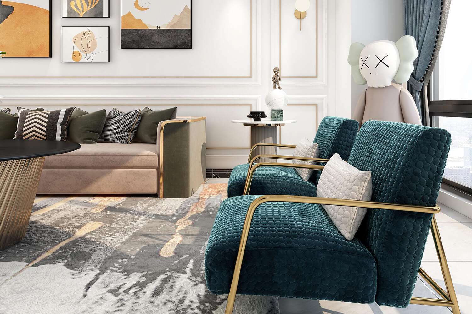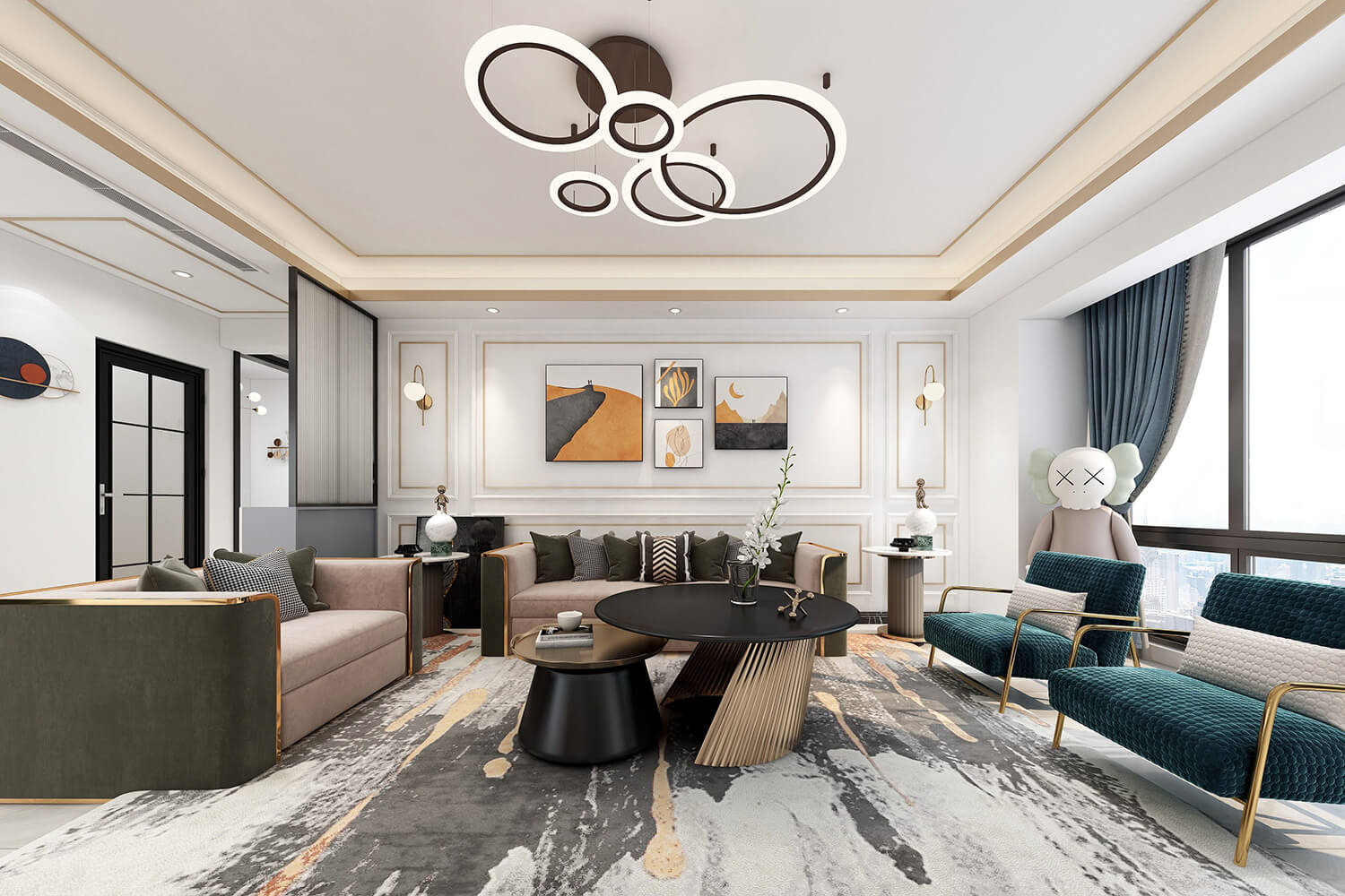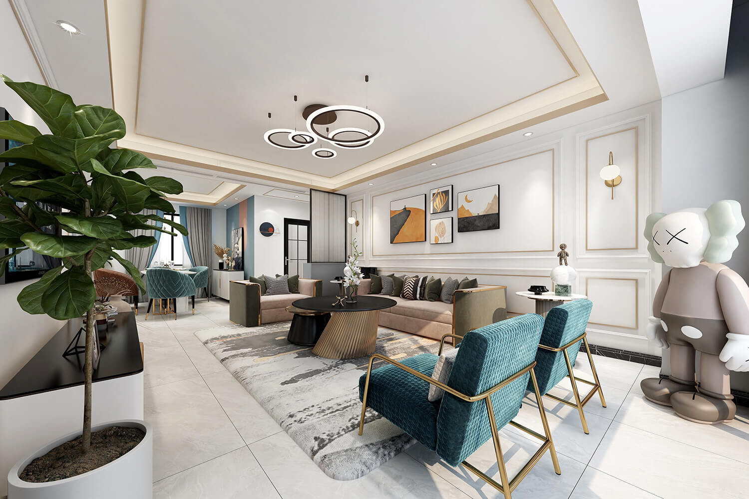 瀏覽量:393本案總面積118㎡,整體配色以白色為主色調(diào),用充滿清新氣息的綠與藍為空間帶來清爽感覺,點亮空間視覺色彩感知,展現(xiàn)別具一格的視覺感,華麗的金屬色澤增添輕奢質(zhì)感。