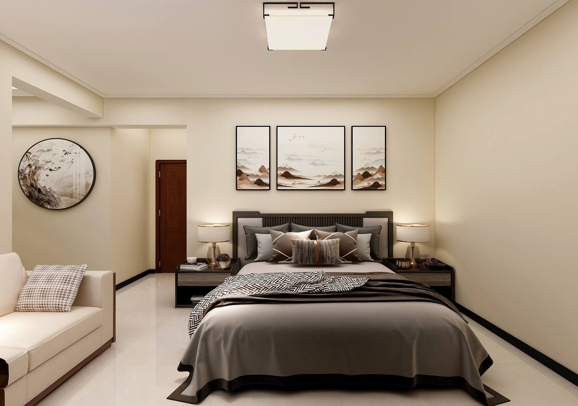 瀏覽量:449本案戶型為:4房2廳2衛(wèi),總面積143㎡。富有韻味的中式元素,在純粹潔凈的空間色調(diào)中,不斷映襯古韻的柔和禪韻。返璞歸真,將一份豁達(dá)與悠然的心境賦予其中,傳遞居住者對靜與雅的追逐。現(xiàn)代擺件的點綴,為整個空間增添現(xiàn)代感。