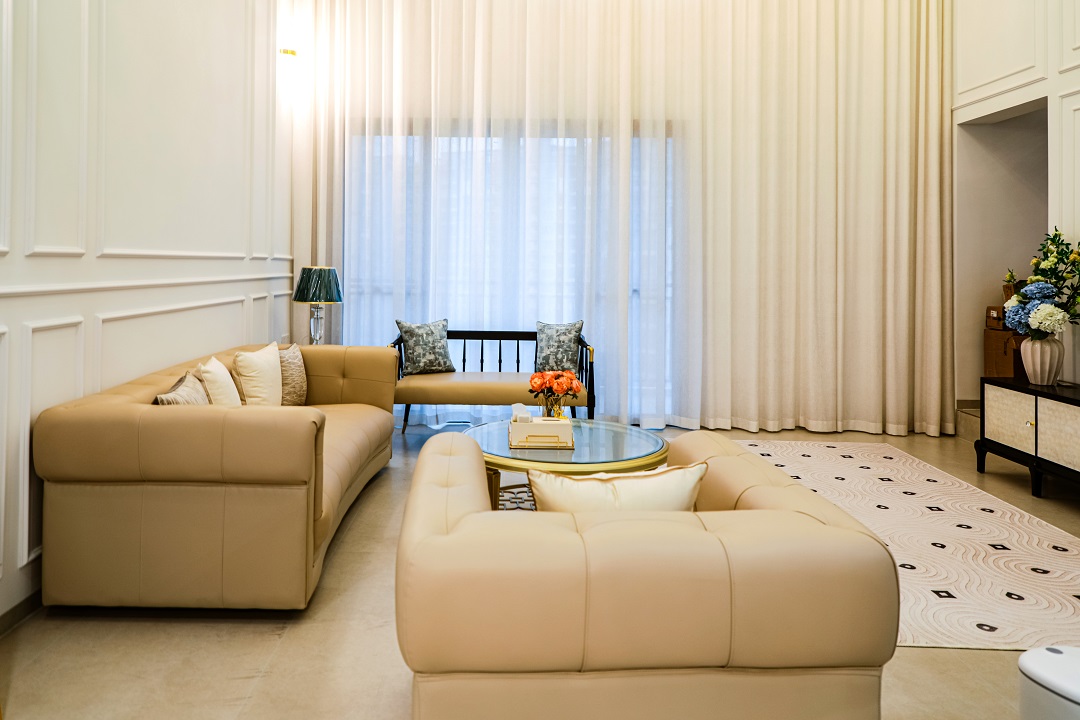 瀏覽量:566乳白色布藝沙發(fā)與黑色復(fù)古腳凳沙發(fā)的搭配,用智能窗簾隨時(shí)打開好心情,從客廳往廚房看去,用復(fù)古法式弧形帶出了精致有趣的視角
