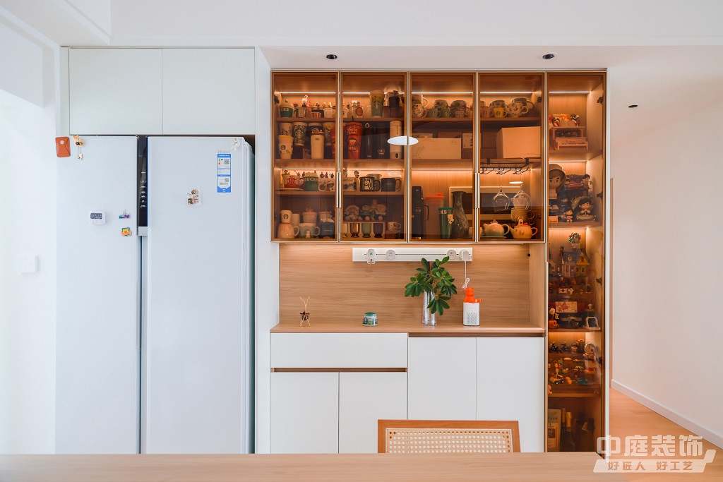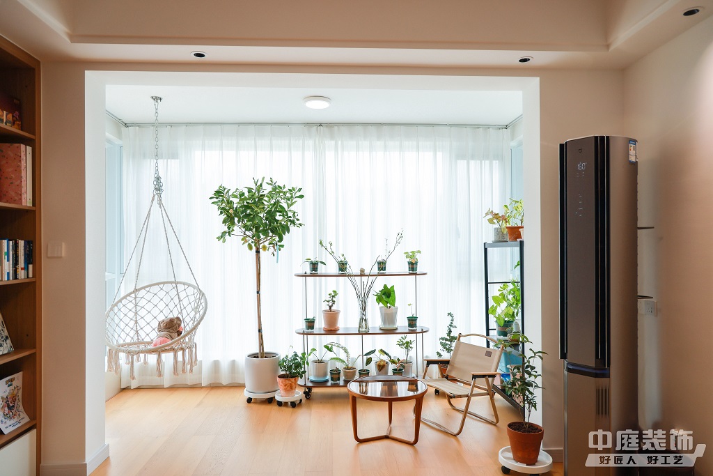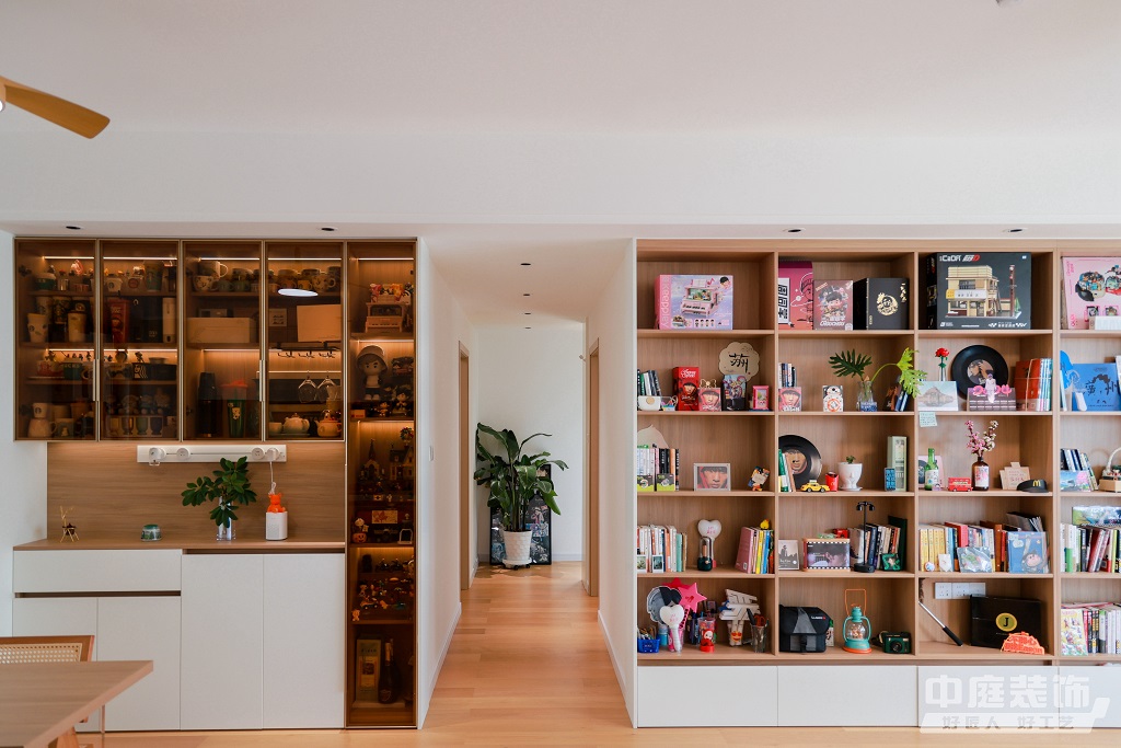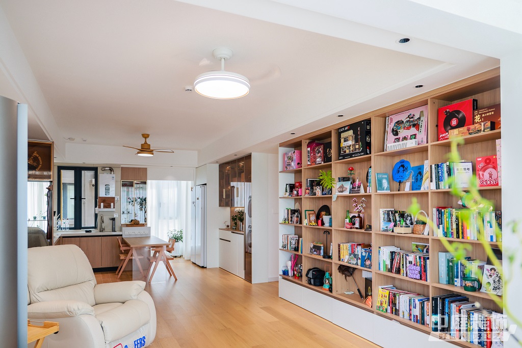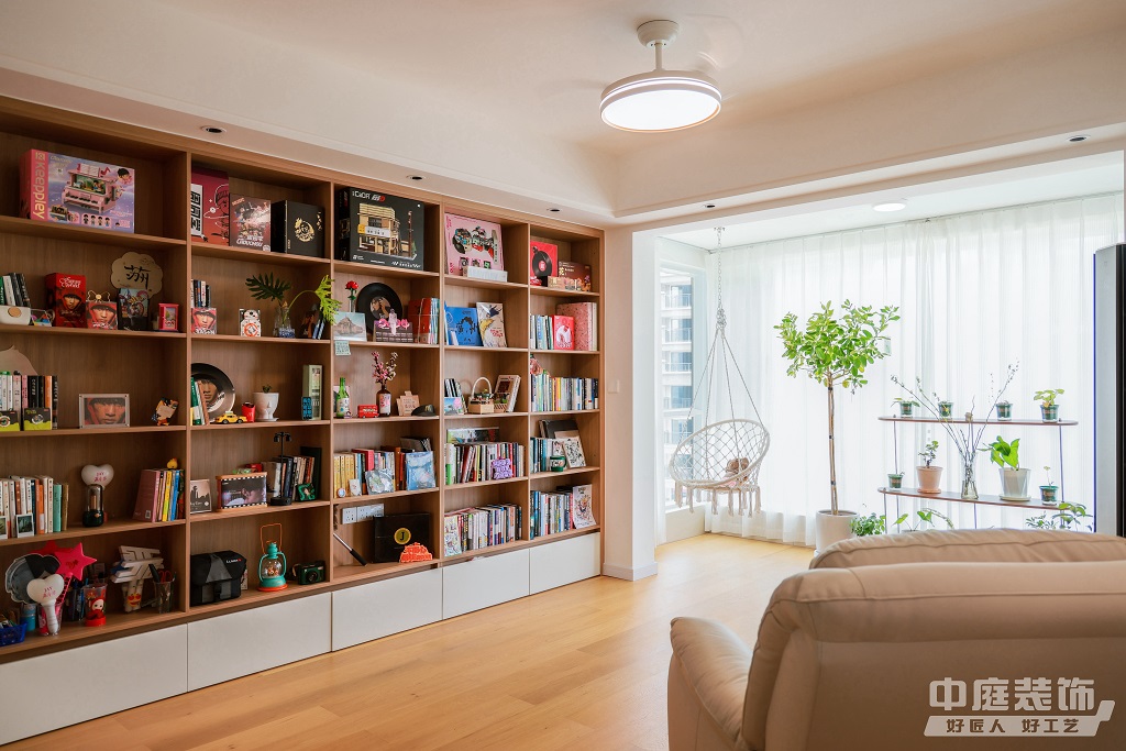瀏覽量:896仿佛步入了一個自然與簡約交織的溫馨空間。淺色調(diào)的木質(zhì)地板營造出一種質(zhì)樸而不失高雅的氛圍??蛷d中央,去客廳化的設(shè)計,一排原木色到頂書架擺滿精心挑選的物件和書籍,一進門就能感受家的溫暖。