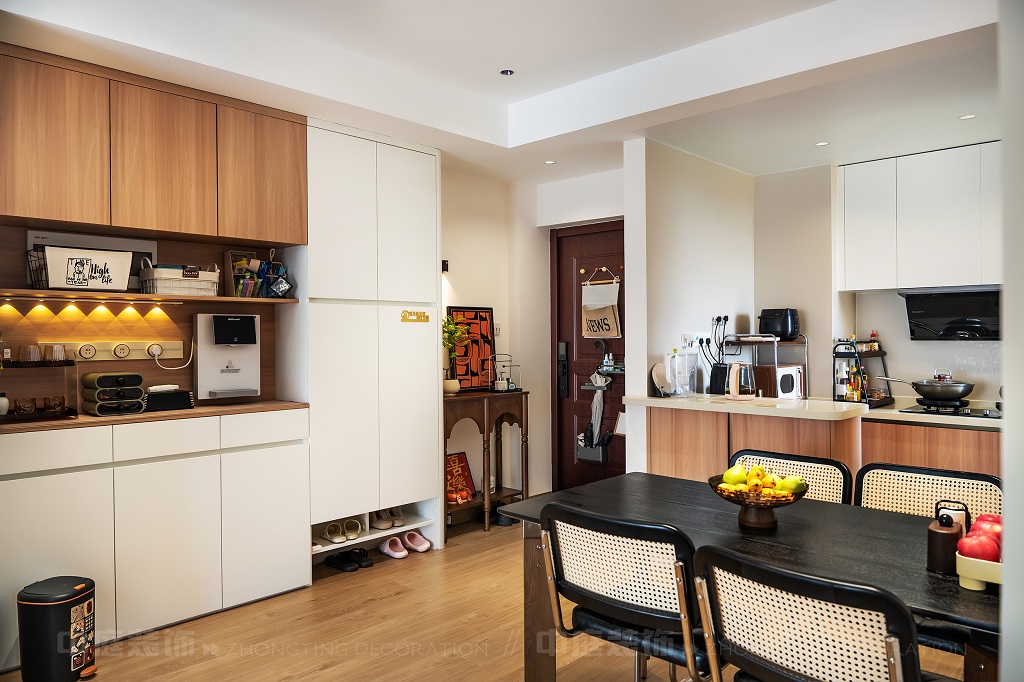 瀏覽量:143每一處細(xì)節(jié),都是他們對“把日子過成詩,讓家裝滿故事”的詮釋。以原木的溫潤、白調(diào)的清爽為基底,在玄關(guān)處嵌入復(fù)古邊幾,擺上藝術(shù)感的裝飾畫,仿佛時光在此打了個溫柔的結(jié);餐廚區(qū)的咖啡角裝滿對生活的小確幸,與開放式廚房的煙火氣交融,是晨起的咖啡香與深夜的飯菜香的浪漫邂逅;客廳里,黑色皮沙發(fā)搭配復(fù)古風(fēng)抱枕,一旁的藝術(shù)綠植蜿蜒生長,就像主人對生活的熱愛肆意又熱烈。