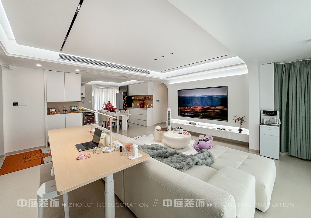 瀏覽量:259這套房子的裝修風(fēng)格屬于現(xiàn)代奶油風(fēng)格。整體以純凈的白色為主色調(diào),營造出簡潔明亮的空間感。線條設(shè)計極為流暢,如拱形門洞、無主燈的線性燈帶,弱化了復(fù)雜裝飾,凸顯極簡美學(xué)。