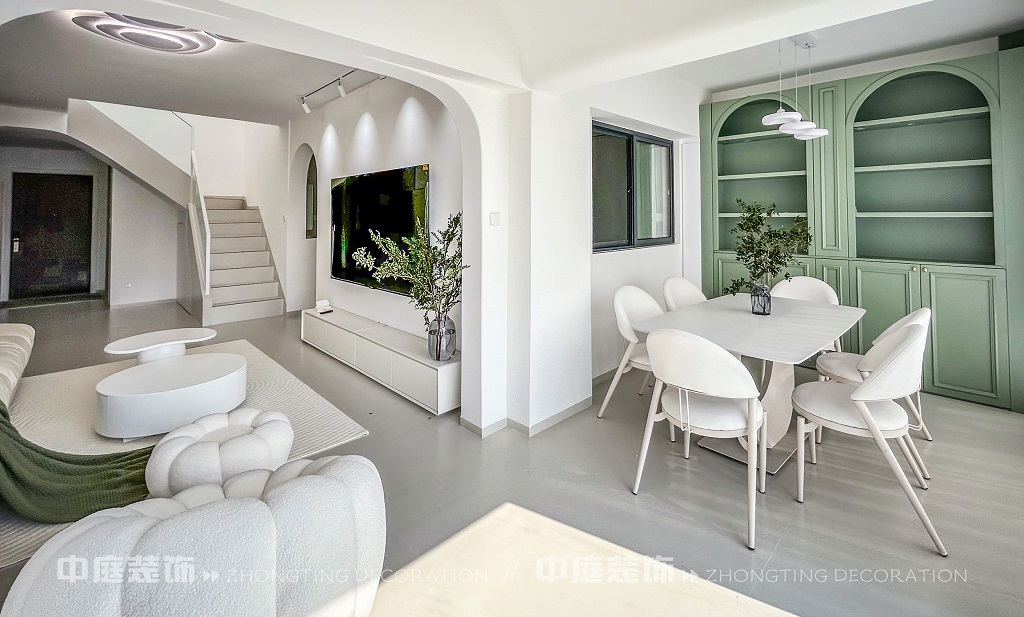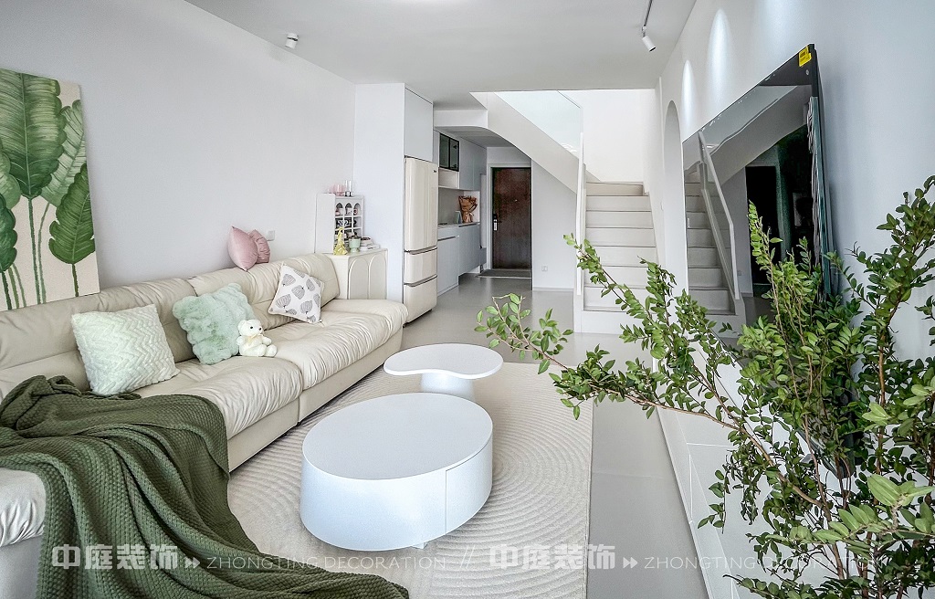 瀏覽量:190這一套綠意盎然的奶油風格好似把森林搬進了家,軟乎乎的奶白沙發(fā)搭配苔蘚綠毛毯,抱枕選了粉綠撞色,往上面一躺,一天的疲憊都被融化了!圓潤的白色組合茶幾,顏值與實用并存,氛圍感直接拉滿。墻面掛畫大葉綠植藝術畫,角落擺放鮮活綠植,將自然綠意融入空間。