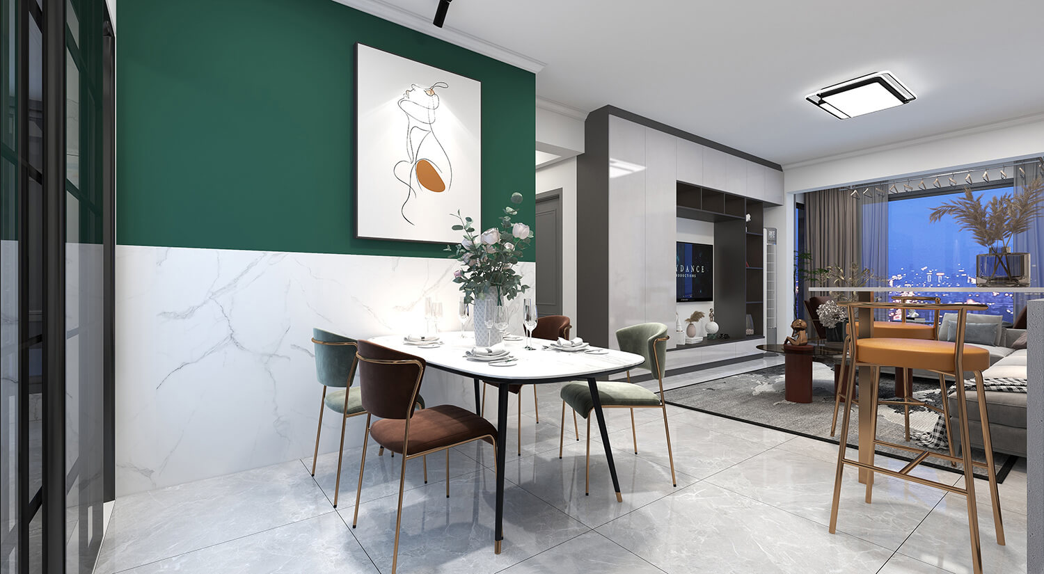 瀏覽量:331本案例戶(hù)型為:4房1廳2衛(wèi),總面積130㎡。墻壁、地板和天花板的顏色選擇明亮的白色,并搭配少量的深綠色作為點(diǎn)綴。在各種金屬質(zhì)感家具元素的襯托下,整體現(xiàn)代感十足。