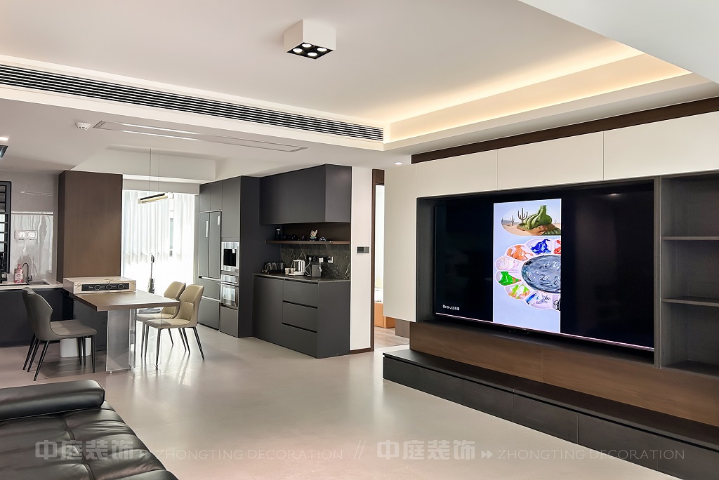 瀏覽量:58客廳以現(xiàn)代黑白灰極簡風(fēng)格為核心,大面積白紗簾引入自然光線,黑色皮質(zhì)沙發(fā)質(zhì)感高級。開放式布局,深灰櫥柜與木質(zhì)餐桌形成材質(zhì)對比,線性吊燈提升精致感,功能與美學(xué)兼具,營造現(xiàn)代簡約的烹飪用餐氛圍。輕柔窗簾與柔和燈光,打造靜謐休息空間。精致的材質(zhì)選擇與合理的功能規(guī)劃,詮釋了“少即是多”的現(xiàn)代簡約居住美學(xué)。