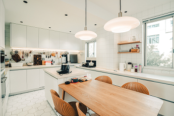 和諧統(tǒng)一的色彩與獨特的空間布局,塑造出干凈純粹,簡練又美的空間氛圍。再次然家里人都很喜歡烹飪,廚房是家庭的核心,經(jīng)常做飯洗碗時都會有兩個人以上一起操作。這個方案很好的解決的業(yè)主的一系列需求